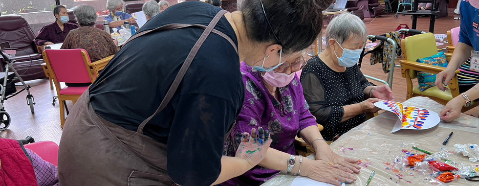 由廖敏君老師帶著永信社會福利基金會爺爺奶奶們,完成一幅幅色彩斑斕繽紛的作品!! 看著不同色彩併發出的多樣貌,也因不同背景、不同美感的人,而產生繽紛多彩的情感。透過壓印畫讓爺爺奶奶們盡情發揮想像力,在玩樂中發現更多視覺啟發,展現創作技巧之餘也能以畫會友,享受開心自在的樂齡活動。