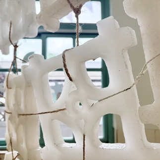 《進城打獵》除了呼應曬皮架這一核心系列的展出形式,將記憶和獵人之於獵物的關係,擬作人和記憶的重要性,從多個面向去研究記憶之於人和建築環境的關係,狩獵、層層分解,並將其展示出。